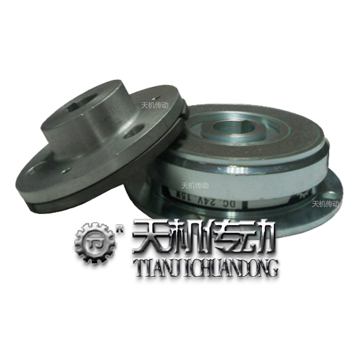 东莞天机传动(台湾天机牌)生产的内轴承式电磁离合器由衔铁(电枢板)、定子、转子、板型弹簧片、磁性线圈、来令片、轴承等元件构成,统一使用DC24V,标准规格0.6-40KG。